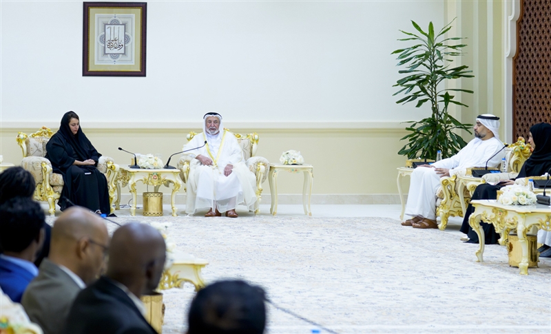 His Highness Sheikh Dr Sultan bin Muhammad Al Qasimi, Supreme Council Member and Ruler of Sharjah, met on Wednesday morning, the first cohort of doctoral students at Global Studies University (GSU), held in the presence of Sheikha Hoor bint Sultan bin Muhammad Al Qasimi, President of GSU, at the Dr Sultan Al Qasimi Centre in University City.